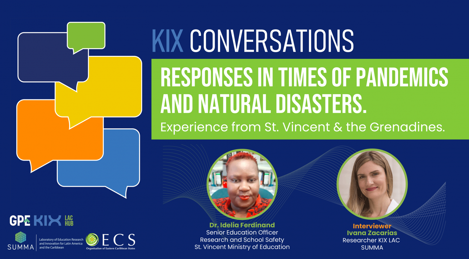 Resiliencia en la educación: respuestas en tiempos de pandemias y desastres naturales. Experiencia de San Vicente y las Granadinas ¿Qué hacemos, cómo respondemos y cómo podemos recuperarnos y seguir adelante? Para la sexta edición de las Conversaciones KIX, la Dra. Idelia Ferdinand fue invitada a compartir el trabajo que se está realizando… Continue reading Resiliencia en la educación: respuestas en tiempos de pandemias y desastres naturales. Experiencia de San Vicente y las Granadinas